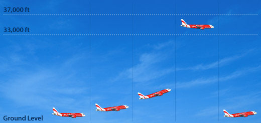 Being thoughtful about what we pack is another obvious choice. A 747 jet burns fuel at a rate of about a gallon per second while cruising at 35,000 feet above sea level carrying more than 500 people and their luggage. Imagine if we had to carry our bags up a 35,000-foot stairway! Flying is lifting weight from one place and then carefully setting it down somewhere else. Every bit of weight savings matters: United Airlines made headlines when they saved 643,000 liters of fuel just by using lighter paper for their inflight magazine.