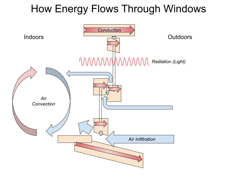 Radiation is the transmission of energy as light or radio waves. For most windows, we want visible light to pass through their panes, but we’d like to block ultraviolet or infrared light so that not too much energy flows through.