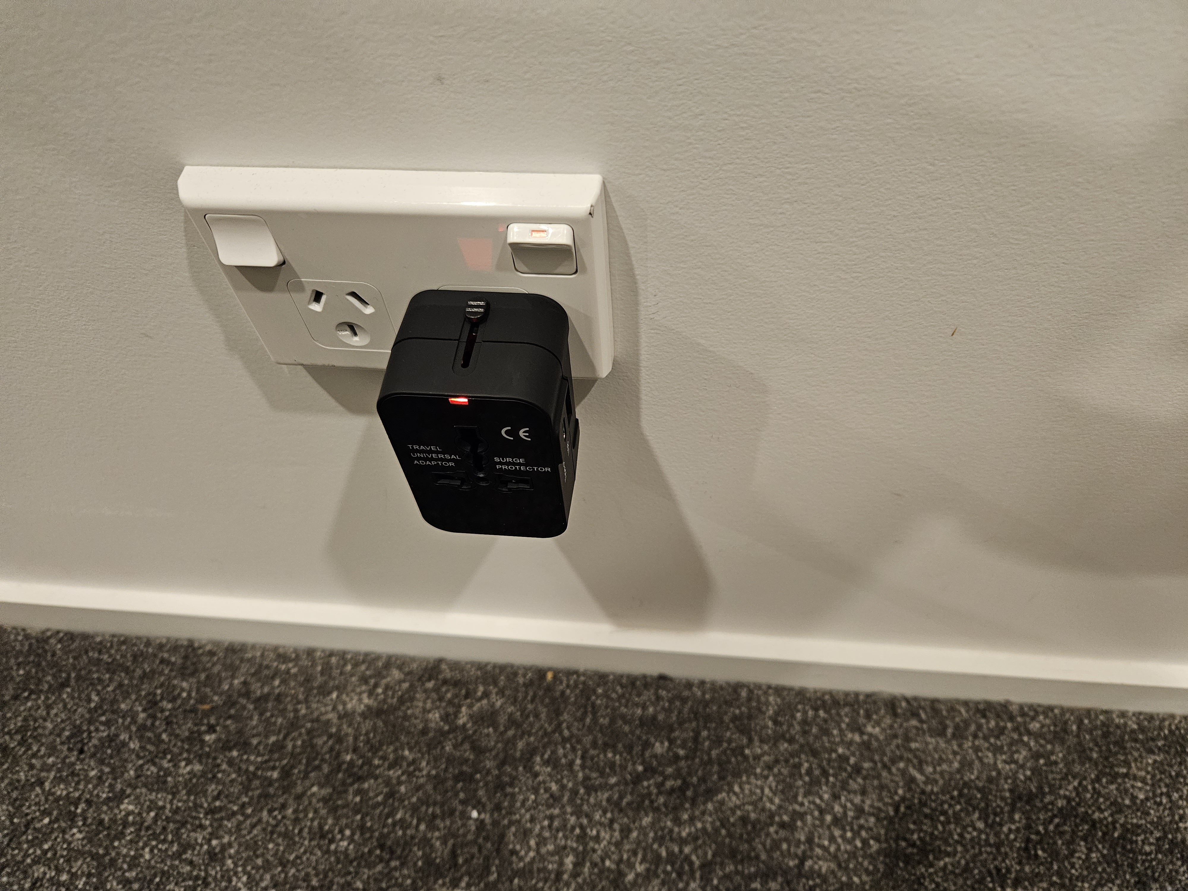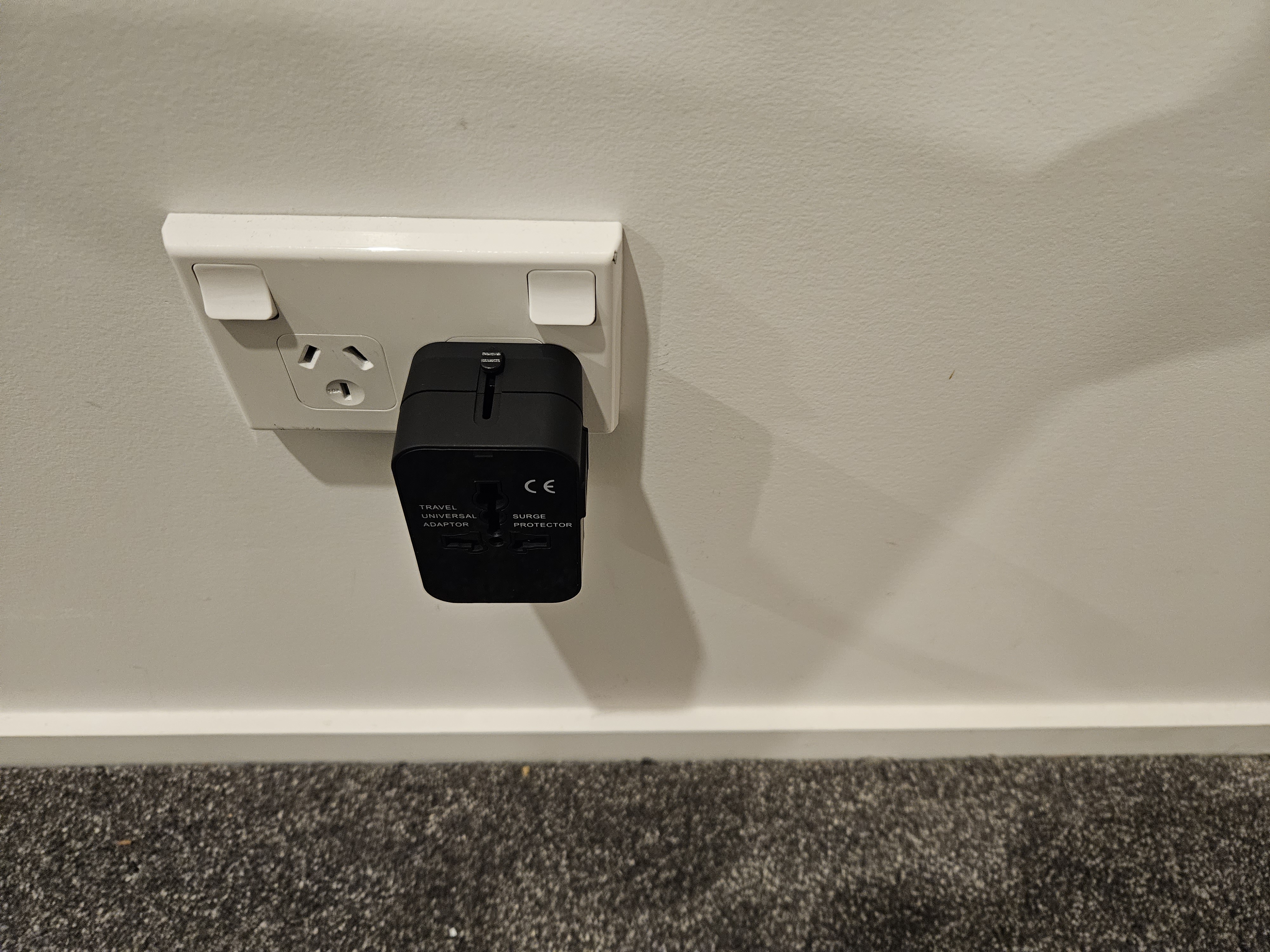New Zealand electricity is 230 volts at 50 hertz—and all of the outlets in our rented apartment are switchable (i.e. can be turned on or off at the wall plate).