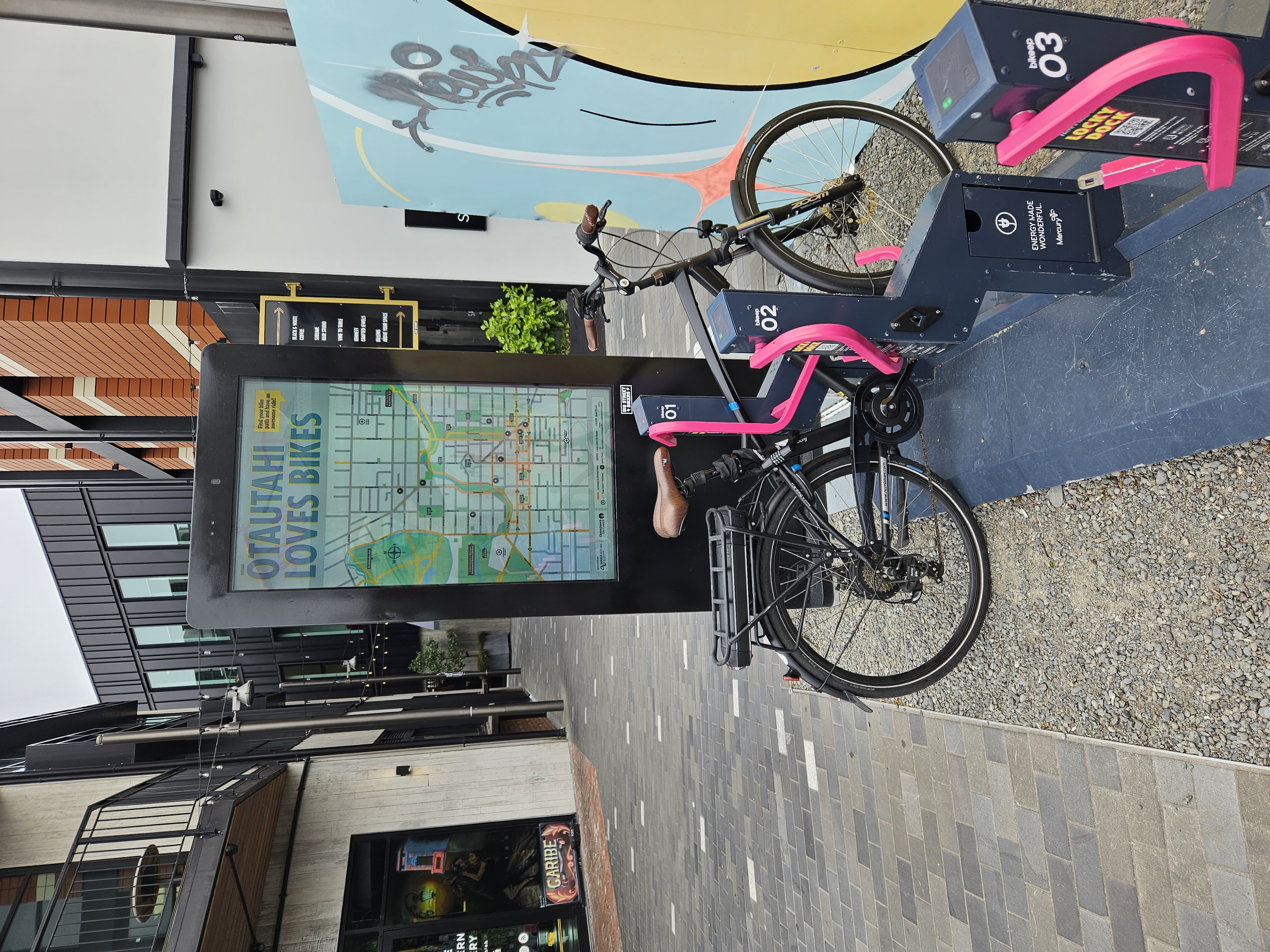 Electric bikes are a viable commuter option, with amenities such as charging stations and covered parking available in the downtown.