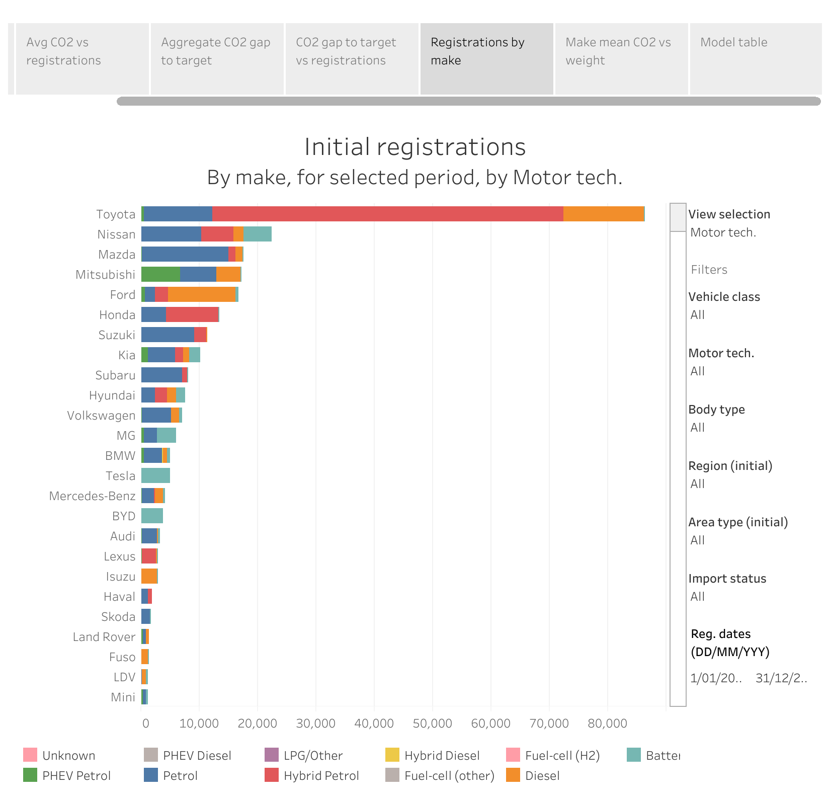Monthly registrations – make/model, New Zealand Ministry of Transport